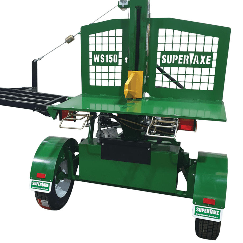The midsize superaxe WS150 is suited to domestic, farm, hire and semi-commercial operations. The WS150 features robust construction, a larger workbench and a 150kg capacity log lifter. The innovative double handed controls system ensures ease of use, quick cycle times and unmatched safety. A 9hp Honda powerpack is fitted standard, delivering 21 tons of splitting force with an 8 second cycle time. Hire and road registration kits are available on this model.