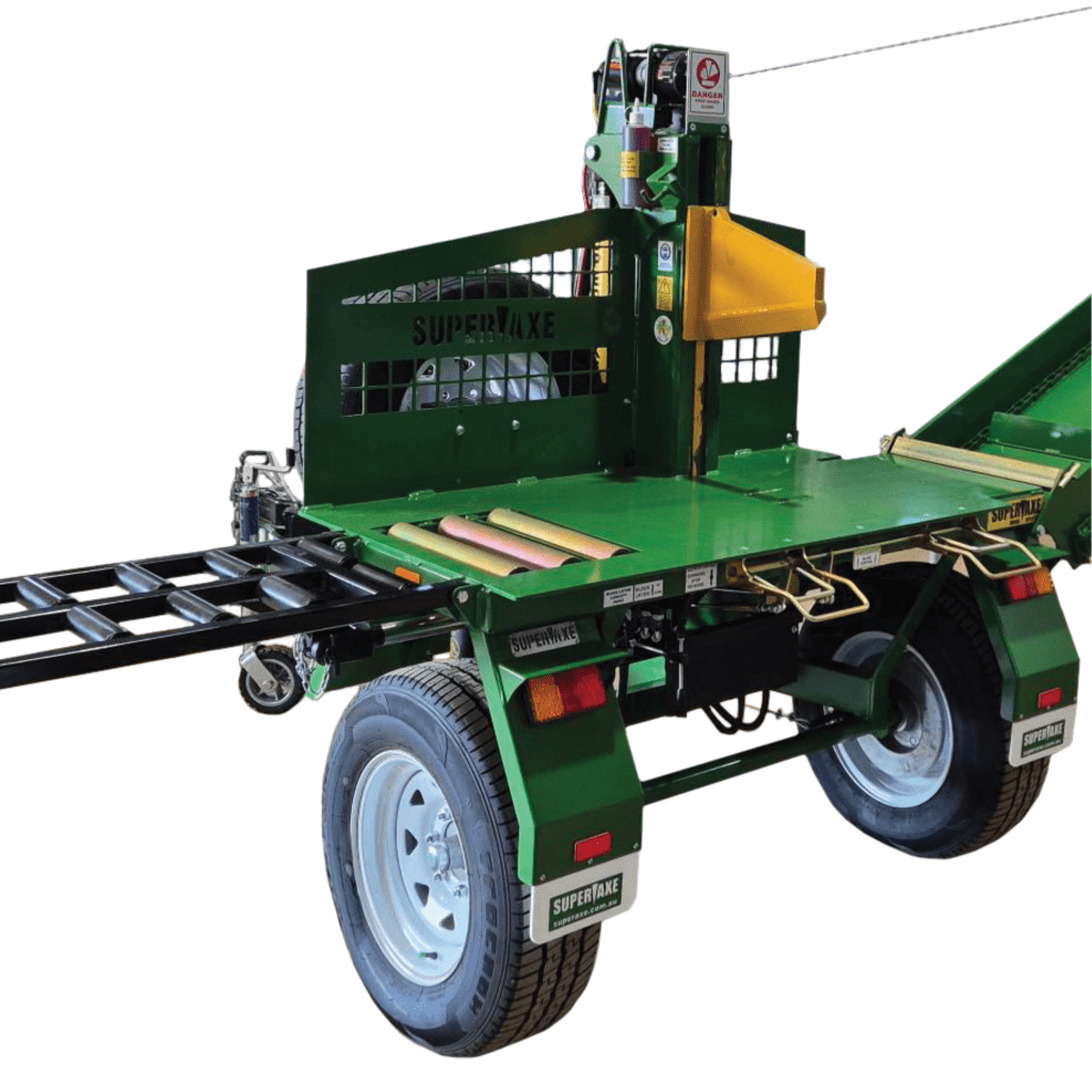 The WS4150 is fast, powerful and highly productive, making it the ideal solution for splitting large volumes of firewood. Producing 26 tons of splitting force, the WS4150 is the most powerful Superaxe in the range with extra features built in to ensure large volumes of firewood can be split with ease. These features include a 18hp Honda powerpack, 200kg capacity hydraulic log lifter, large bench area with in-built rollers and double handed controls. The WS4150 is also available with a 3.6m fold out elevator, road registration or a hire kit.